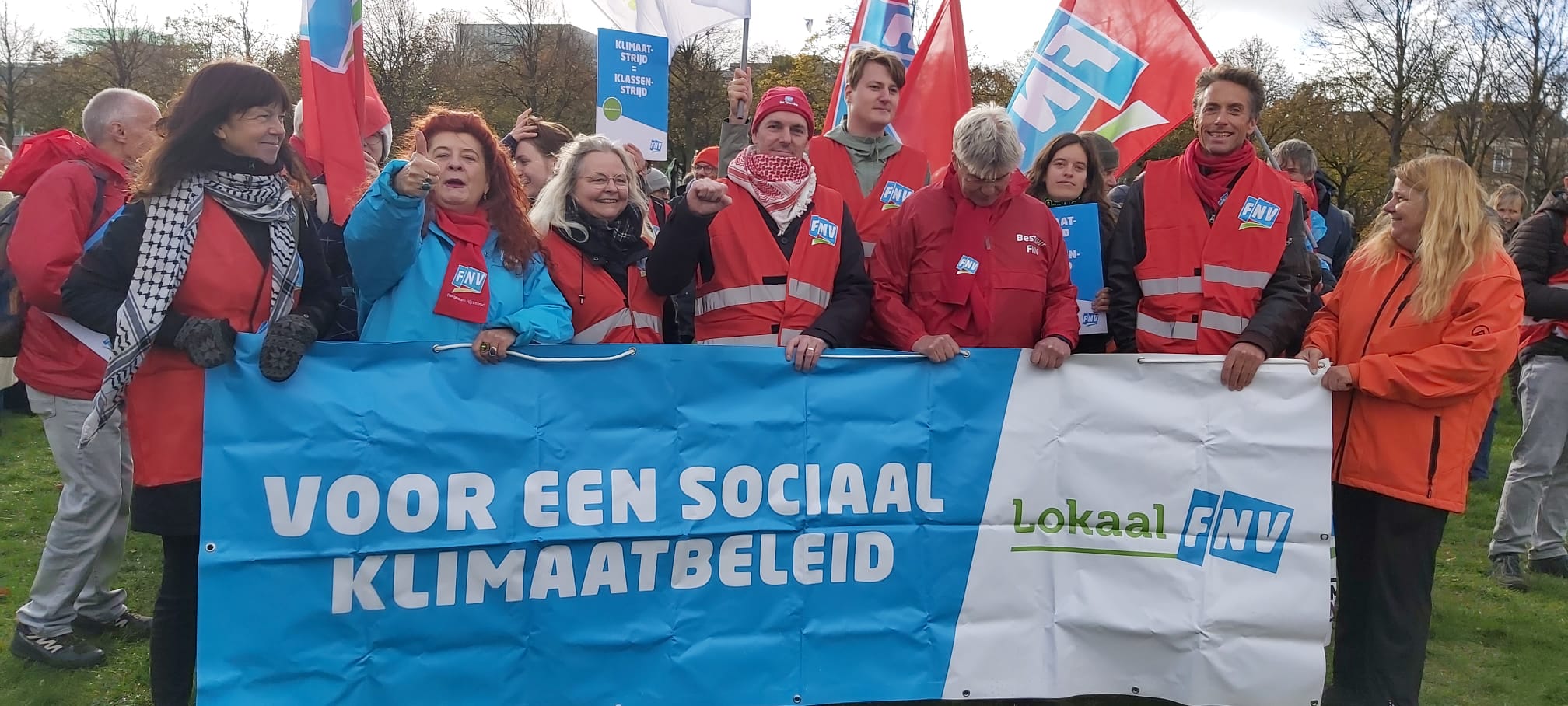 Op 26 oktober 2025 vulden duizenden mensen de straten van Den Haag tijdens de Klimaatmars “Voor een rechtvaardige toekomst”. Samen lieten zij hun stem horen voor een gezonde, leefbare aarde en een eerlijke transitie waarin mens en milieu hand in hand gaan.Ook FNV Rotterdam was erbij, zichtbaar en betrokken, om te laten zien dat de strijd voor een rechtvaardig klimaatbeleid niet losstaat van de strijd voor fatsoenlijk werk en inkomen. Want, zoals de FNV het samenvat: